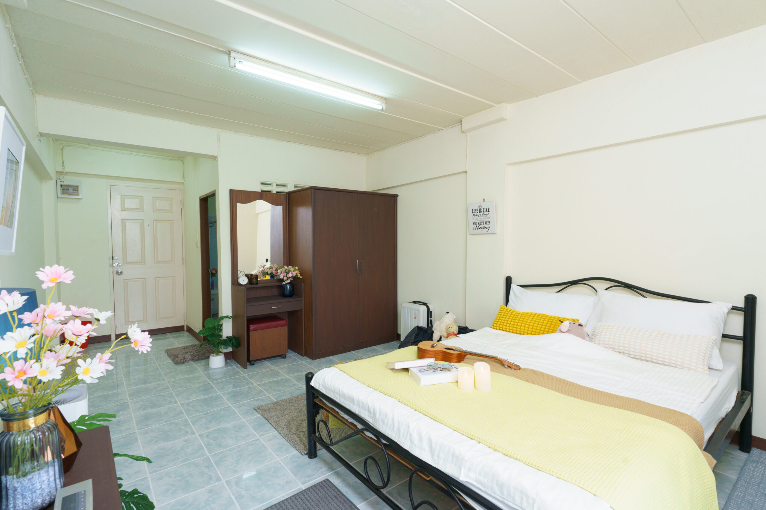 ห้องพักเฟอร์นิเจอร์ครบพร้อมอยู่ ไม่มีเครื่องปรับอากาศ ช่วยคุณประหยัดค่าใช้จ่าย ค่าน้ำค่าไฟคิดตามอัตรารัฐบาลไม่บวกเพิ่ม เดินทางสะดวก ปลอดภัย ใกล้ถนนใหญ่